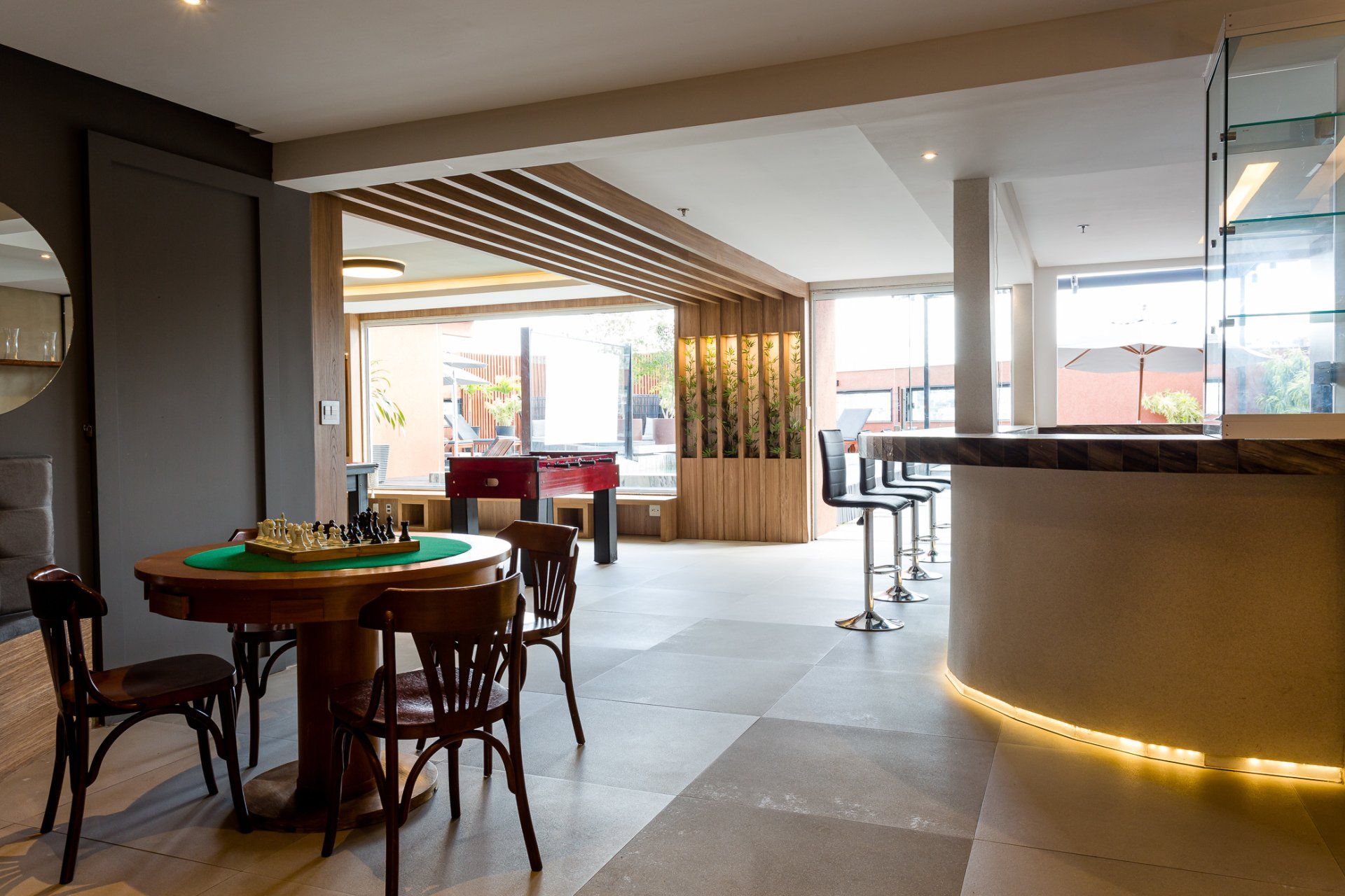 Juntamente a esses espaços de negócios, o hotel oferece também ambientes de lazer, como espaço fitness, salão de jogos, sauna, churrasqueira para locação, e piscina na cobertura, com vista panorâmica da cidade. O nosso buffet de café da manhã não fica de fora entre os nossos atrativos. Por ser tão elogiado e tão surpreendente, já é um dos favoritos de quem vem à cidade.